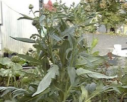 アーティチョークは、水はけのよい粘土質という難しい条件を要求するうえ背丈が1.5~2mと高く、大型にならないと咲かないので一般家庭での栽培は少し大変です。
